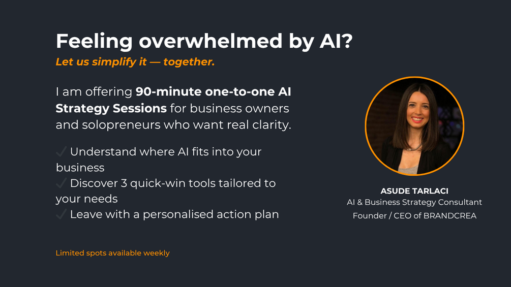 That is why Brandcrea now offers focused, one-to-one AI Strategy Sessions — designed to simplify decision-making and introduce immediate tools tailored to your workflow.